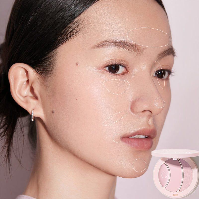 Pro Tip: Tap on high points like inner corners, nose tip, aegyo-sal, cupid’s bow, and cheeks for radiant accents.